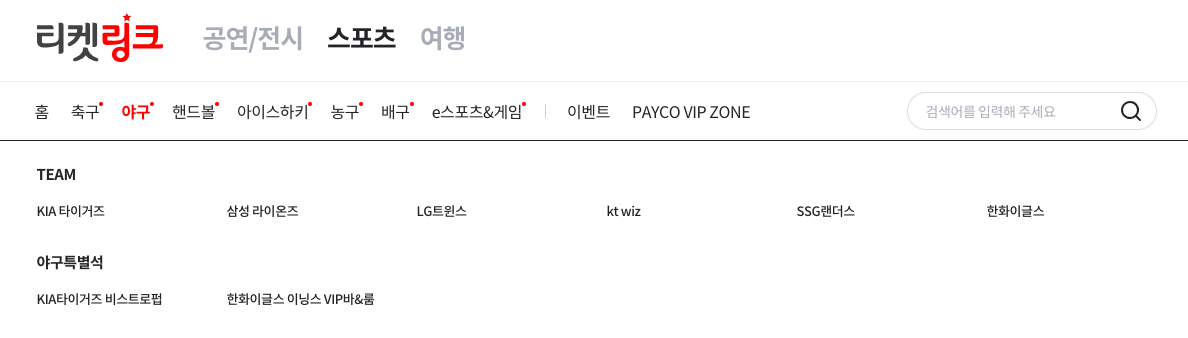 구단별 티켓 예매 사이트