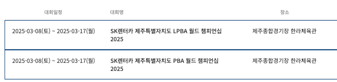 PBA 월드챔피언십 경기 일정